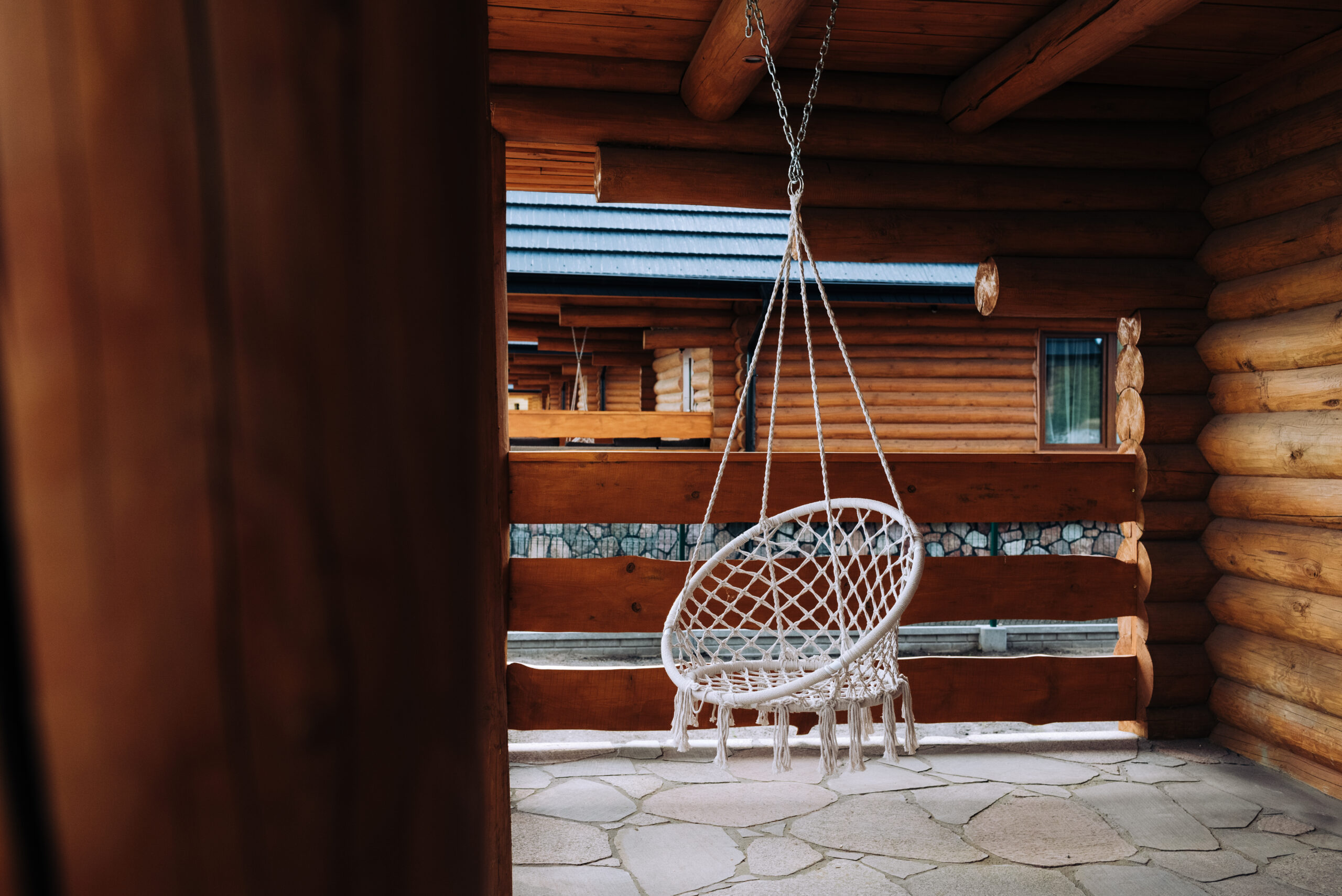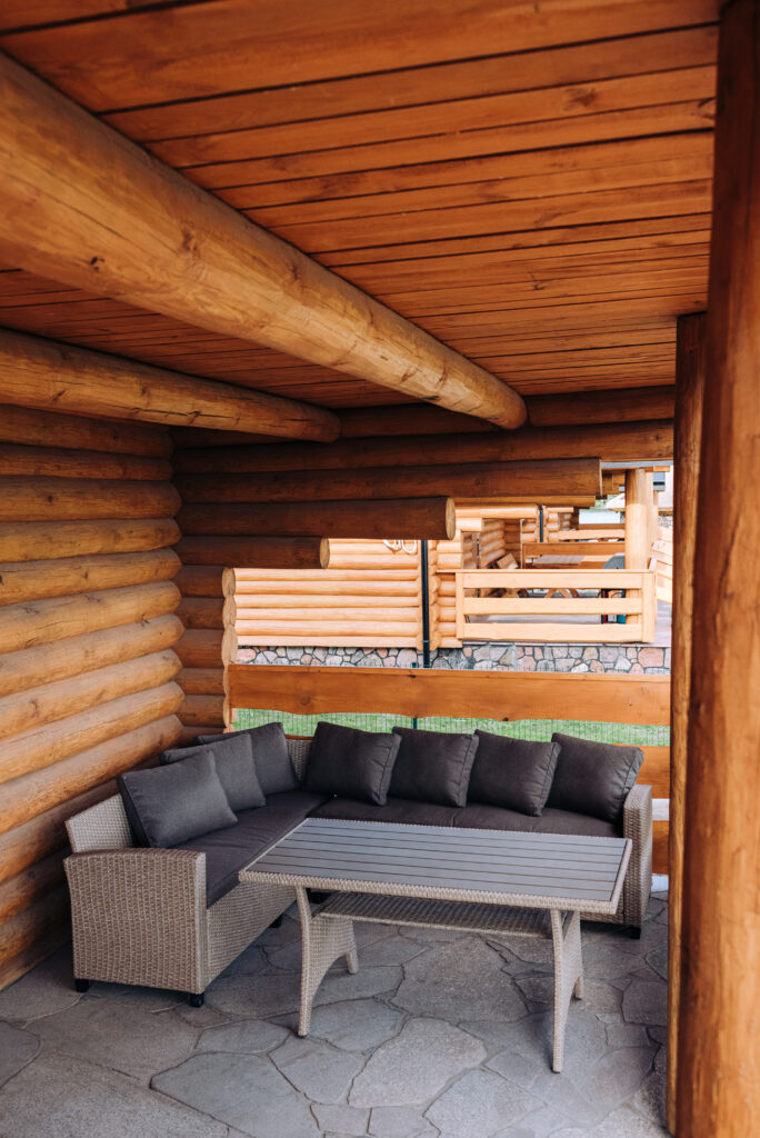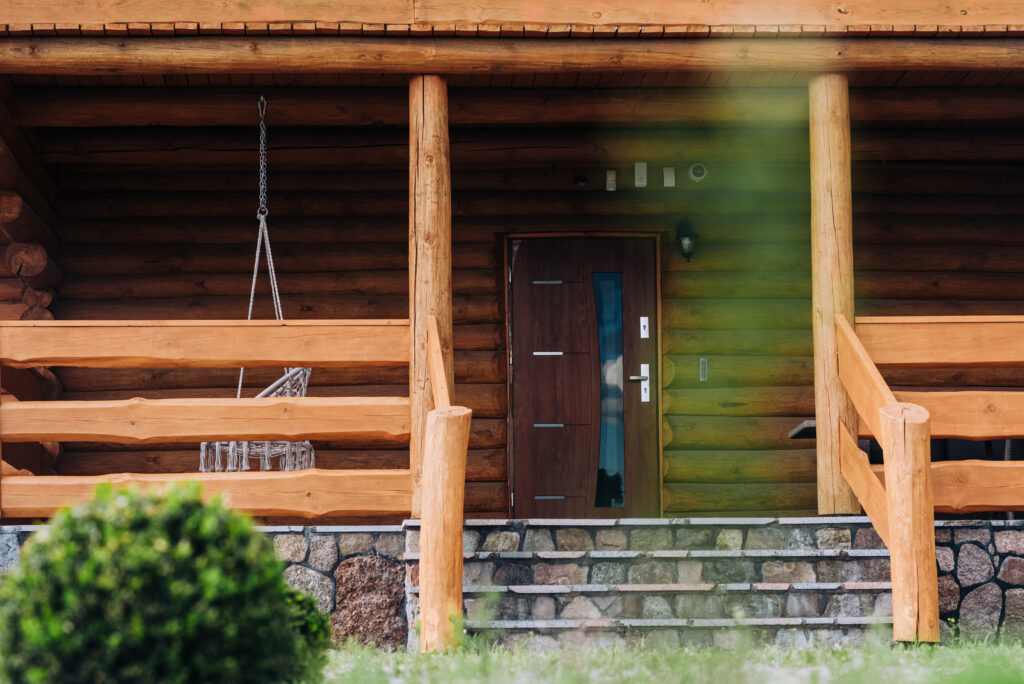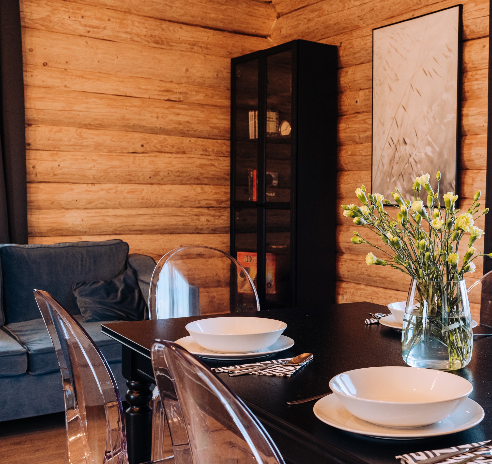 Najbardziej klimatyczny drewniany dom znajdujący się w okolicy. Z zewnątrz pozornie taki sam jak każdy inny, lecz jego wnętrze zdecydowanie odróżnia się od innych. Drewniane lekko zsiniałe bele ścian nawiązują do koloru rybackich sieci, a biały sufit oraz elementy wyposażenia kojarzą się z kolorem mew, których nie brakuje wokół jeziora.